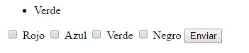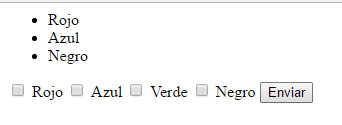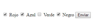 <form action="multiseleccion.php" method="get"> <input type="checkbox" name="como[]" id="res1" value="Rojo"> <label for="res1">Rojo</label> <input type="checkbox" name="como[]" id="res2" value="Azul"> <label for="res2">Azul</label> <input type="checkbox" name="como[]" id="res3" value="Verde"> <label for="res3">Verde</label> <input type="checkbox" name="como[]" id="res4" value="Negro"> <label for="res4">Negro</label> <button type="submit">Enviar</button> </form>Los corchetes indican que todos esos campos input forman un array. Es decir, hay que poner el mismo atributo name seguido de [] en cada input que quieras que forme parte del mismo array. Si se envía el formulario mediante GET podrás ver que se envían en forma de cadena con este aspecto ejemplo: como[]=Rojo&como[]=azul.