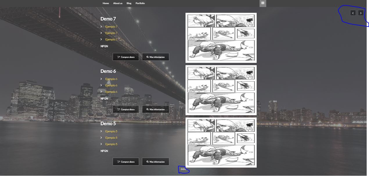 Y pues eso hacia que los indicadores y flechas (adentro de los circulos azules) no trabajasen como deberian; Y pues eso es todo, aqui mi codigo que utilice para este carousel. Y como se daran cuenta no sera necesario tener un indicador con class="active" ya que eso lo estaran manejando con un variable llamada $Indicators. Es facil de entender.