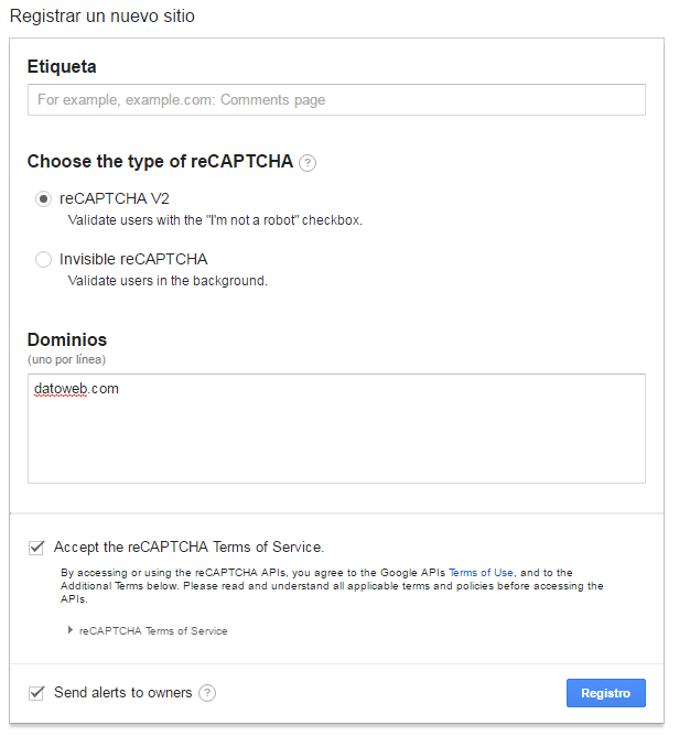 1 Crear una cuenta de recaptcha v2 (es gratis)