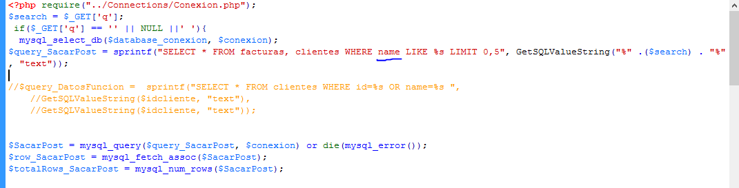 $query_SacarPost.= sprintf(" and (clientes.nombre_cliente like %s or facturas.numero_factura like %s)",